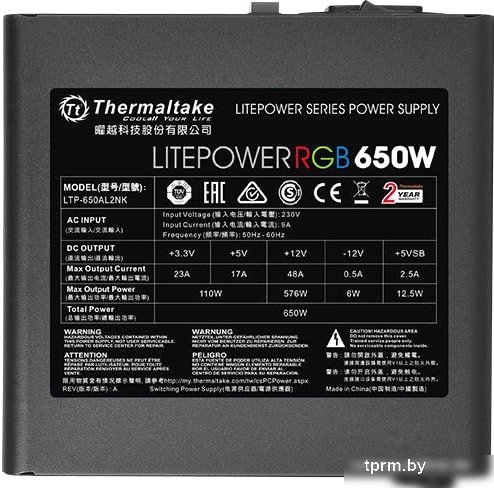Блок питания Thermaltake Litepower RGB 650W LTP-650AL2NK